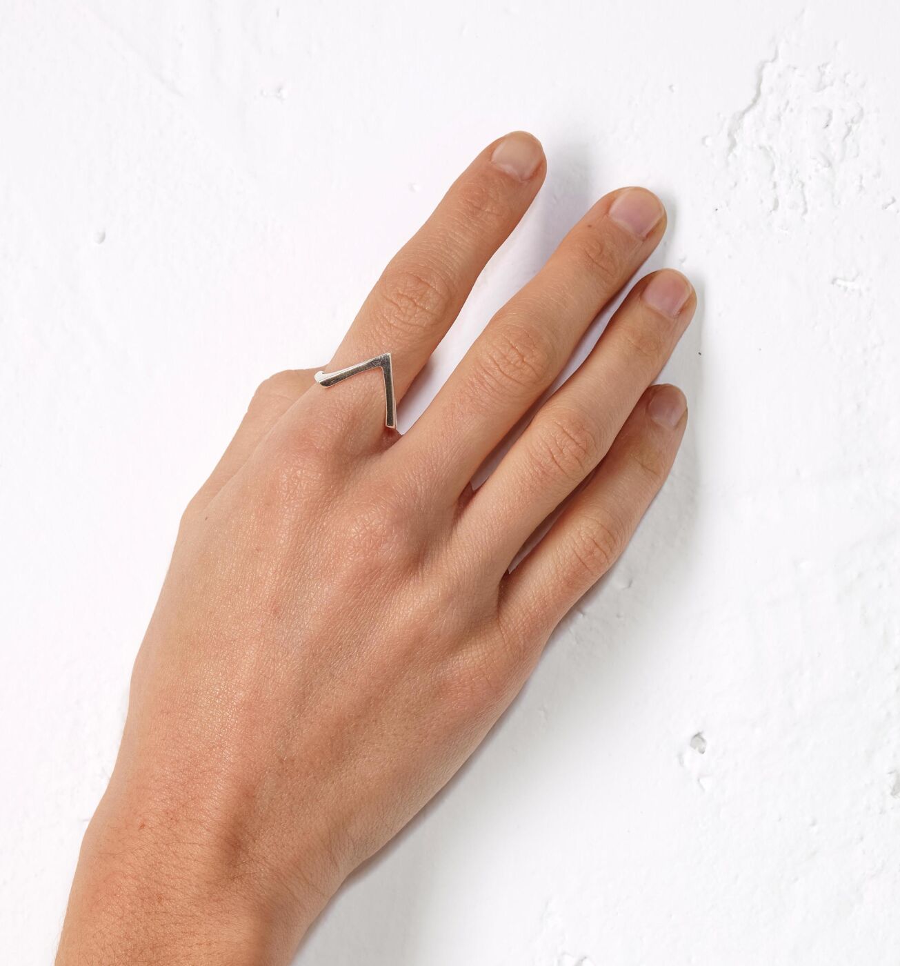 Ένα κομψό και διακριτικό λεπτό δαχτυλίδι σε σχήμα V από ασήμι 925, με καθαρές γραμμές και minimal αισθητική. Ο γεωμετρικός chevron σχεδιασμός του αγκαλιάζει φυσικά το δάχτυλο, δημιουργώντας ένα σύγχρονο και κομψό αποτέλεσμα.